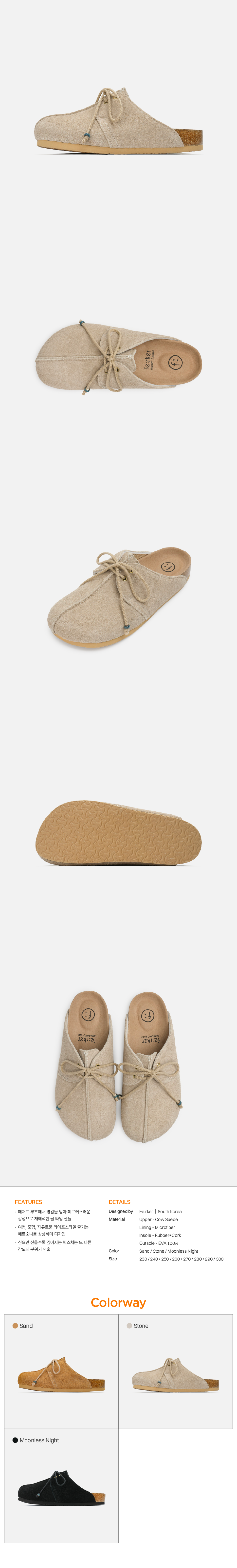 데저트 부츠에서 영감을 받아 페르커만의 감성으로 재해석한 뮬 타입 샌들 Pord.