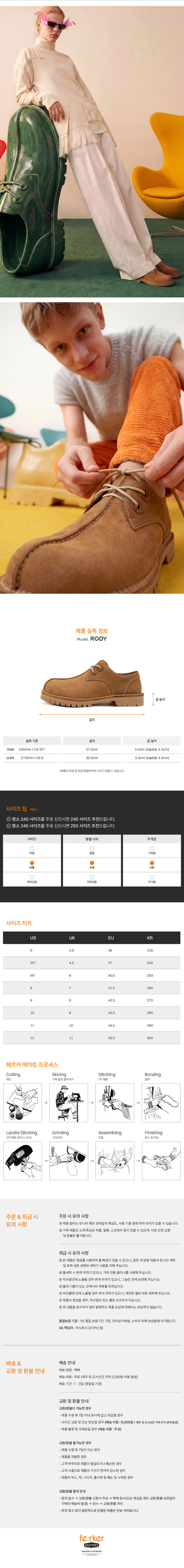 룩북 속 신발의 형태를 확장한 대형 오브제는 Rody의 조형적 존재감을 직관적으로 투영합니다. 곡선과 절개, 입체적인 볼륨감은 실제 제품의 구조와 유기적으로 연결되며, 신발을 단순한 소모품이 아닌 하나의 '오브제'로 새롭게 정의합니다. 페르커의 첫 다운스티치(Down-stitch) 제품인 Rody를 통해, 형태를 만드는 구조와 보이지 않는 완성도의 완벽한 조화를 경험해 보시기 바랍니다.
