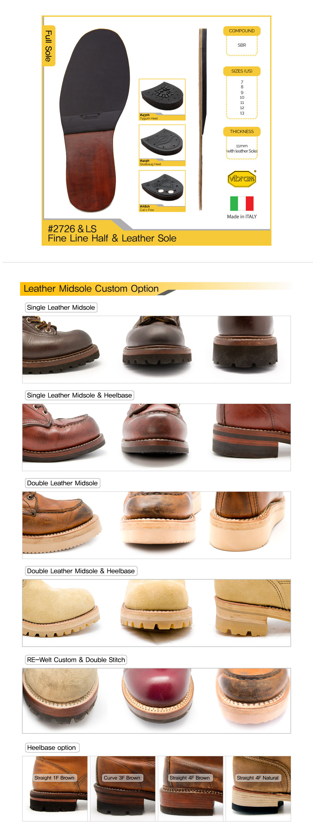 #2726 fine line half sole & leather sole